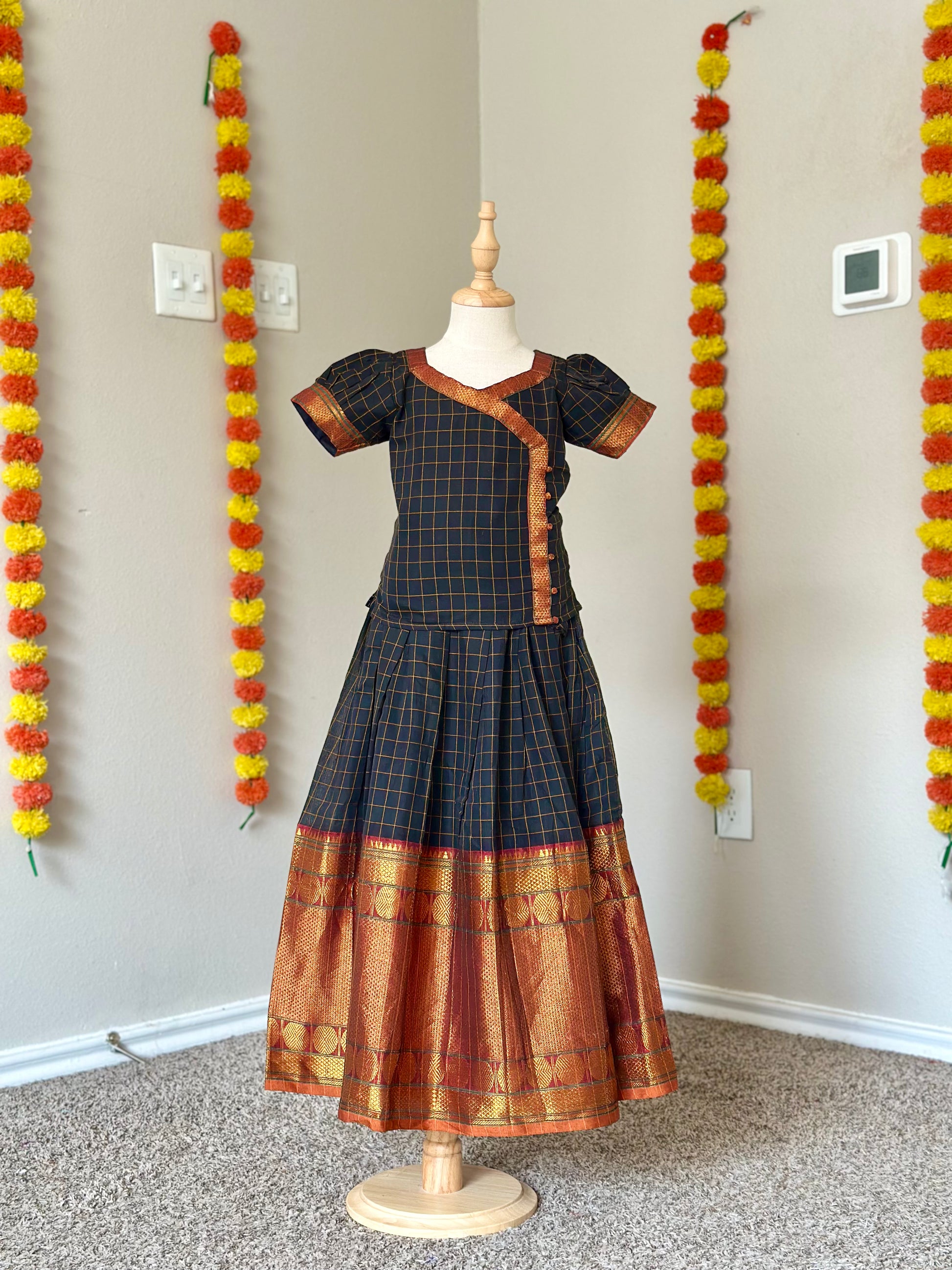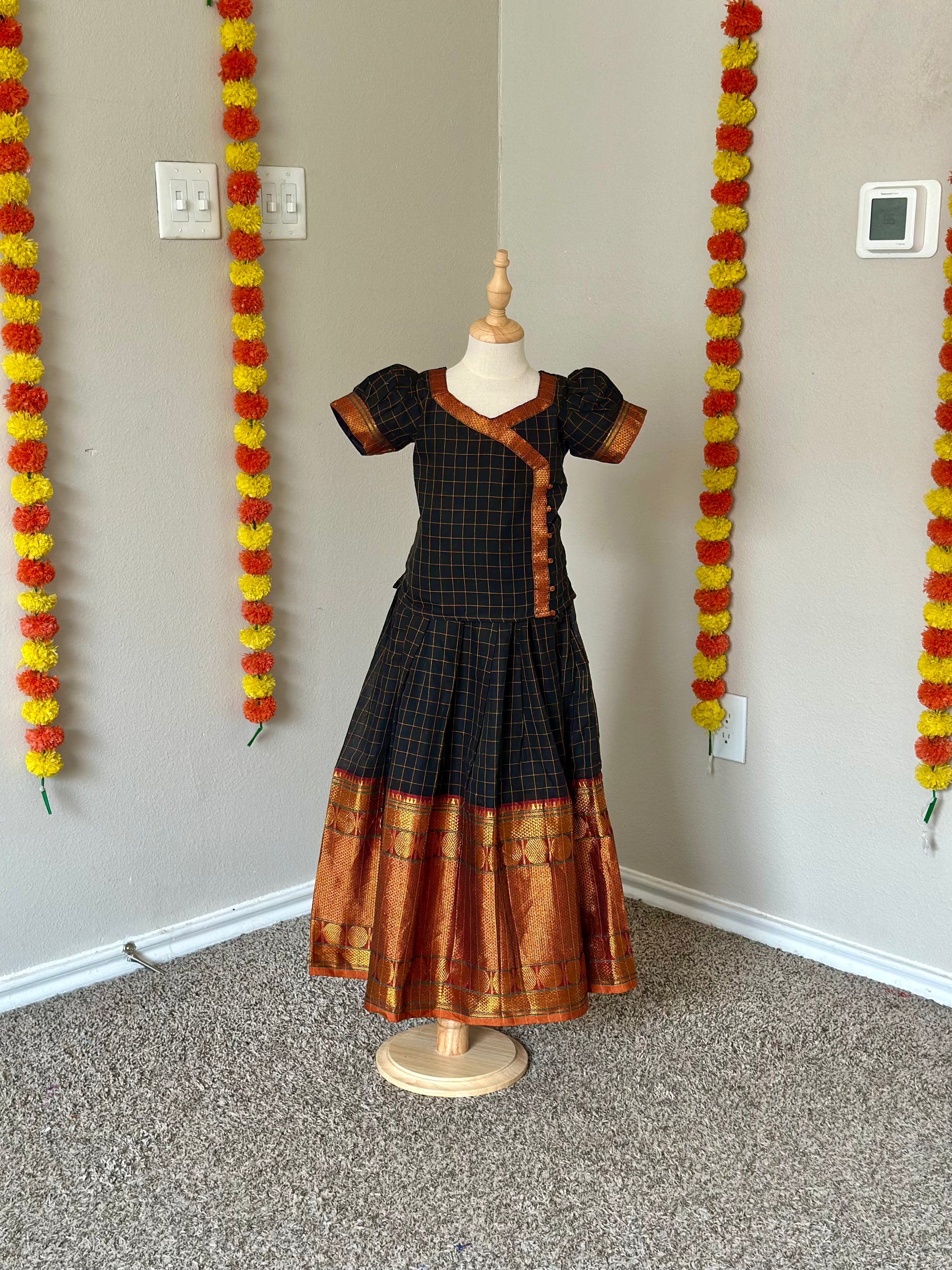 Black checked Narayanpet kids lehenga