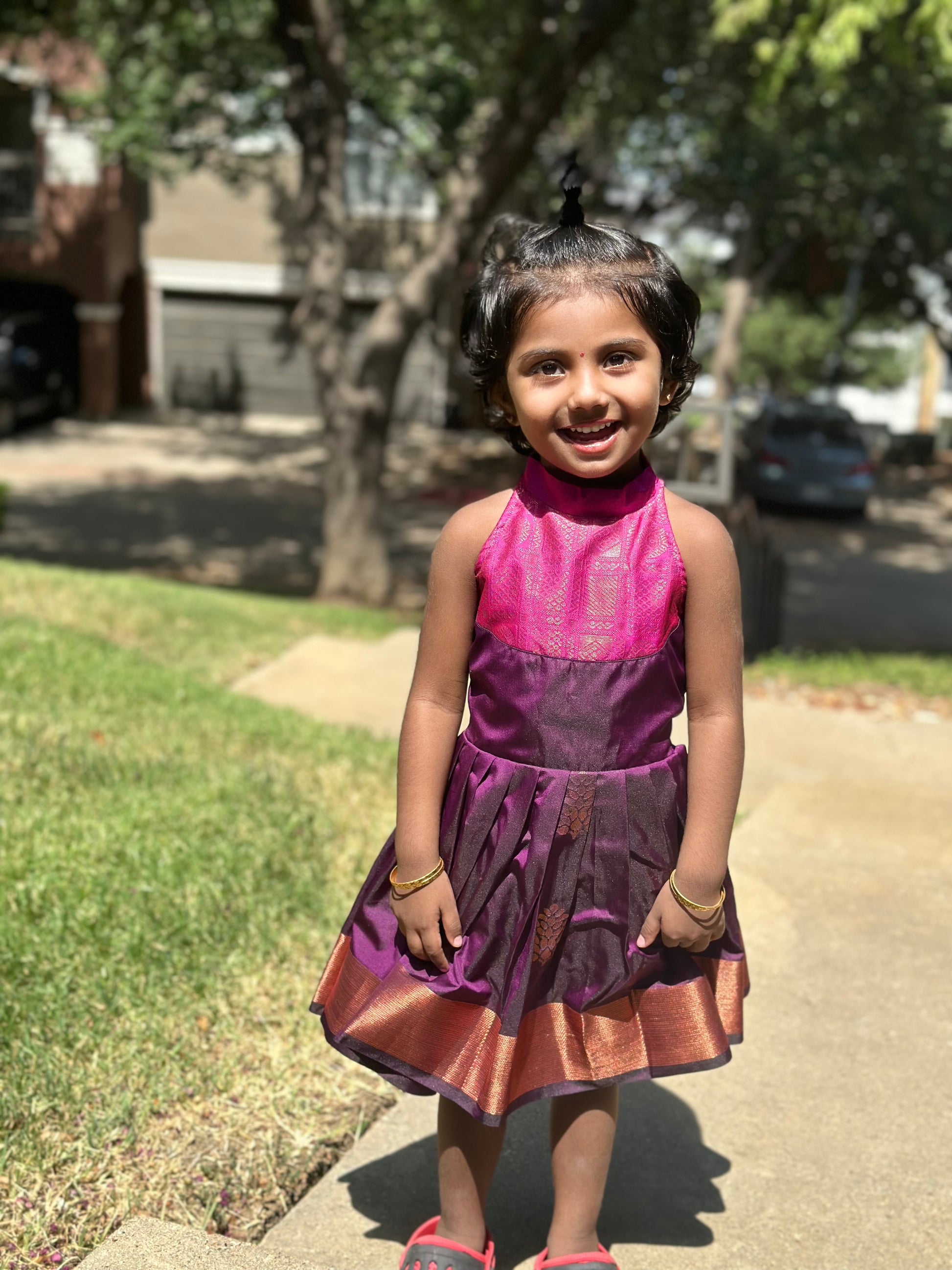 This purple semi silk halter frock is the perfect blend of Indo-western style. Made with high-quality fabric, it features a comfortable halter neckline and falls beautifully at knee length. Elevate your wardrobe with this elegant and versatile piece.