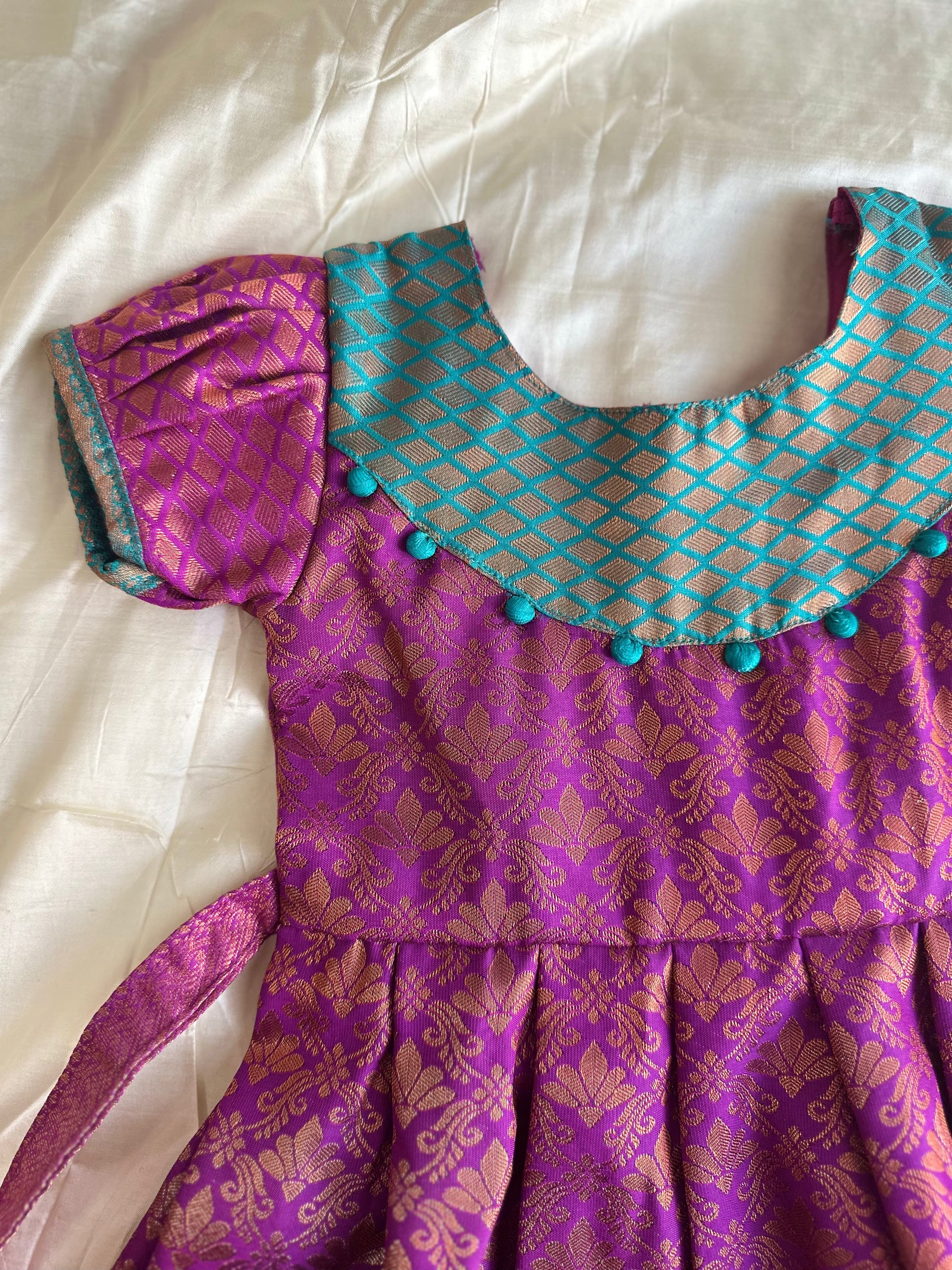 This Pink copper zari frock combines elegance with comfort, featuring a smooth semi-silk exterior and a breathable 100% cotton lining. Its contrast yoke patch ensures a perfect fit, making it ideal for both casual and semi-formal occasions. The natural cotton lining enhances comfort, while the rich bottle green shade adds a sophisticated touch to your wardrobe.
