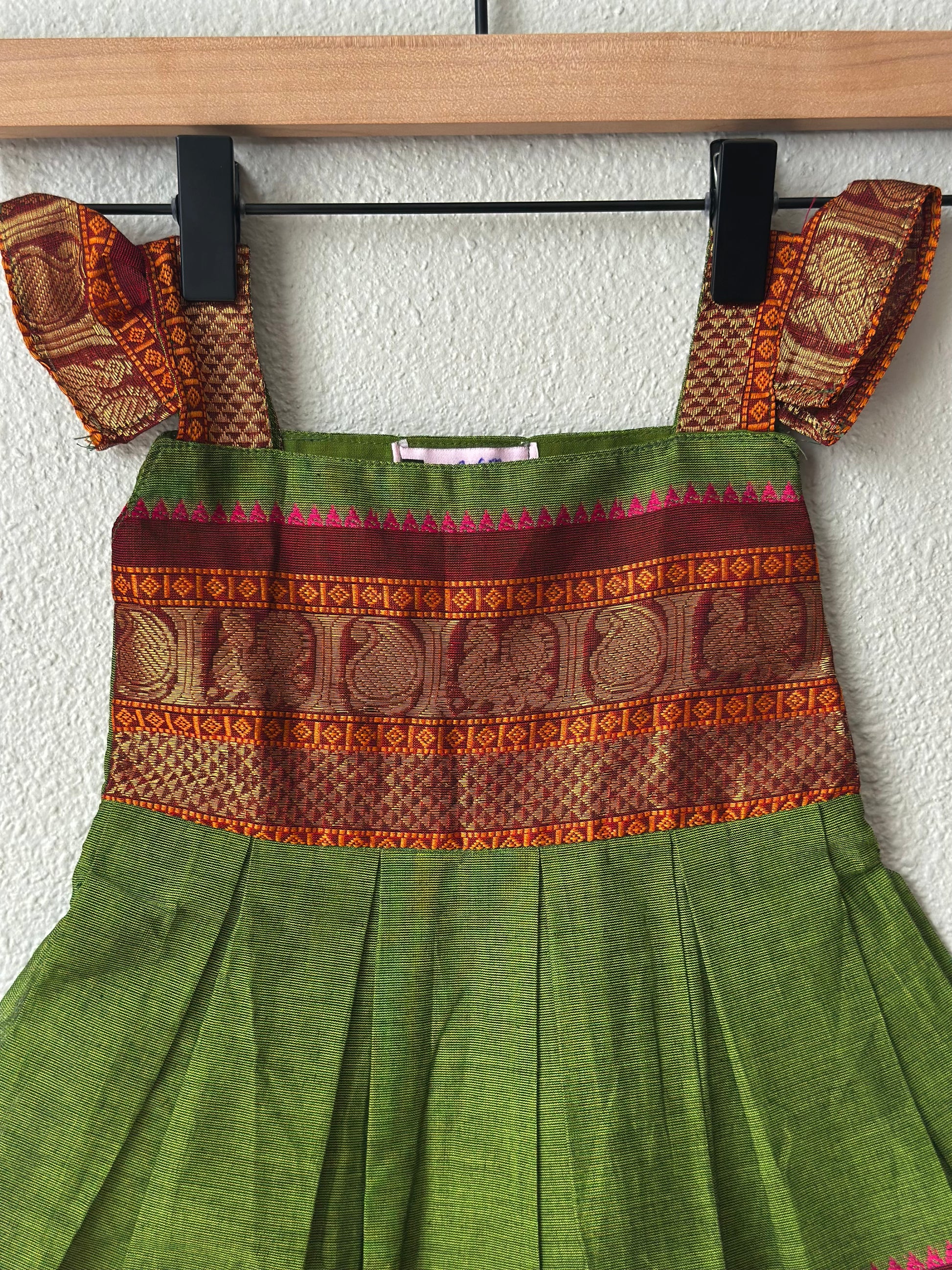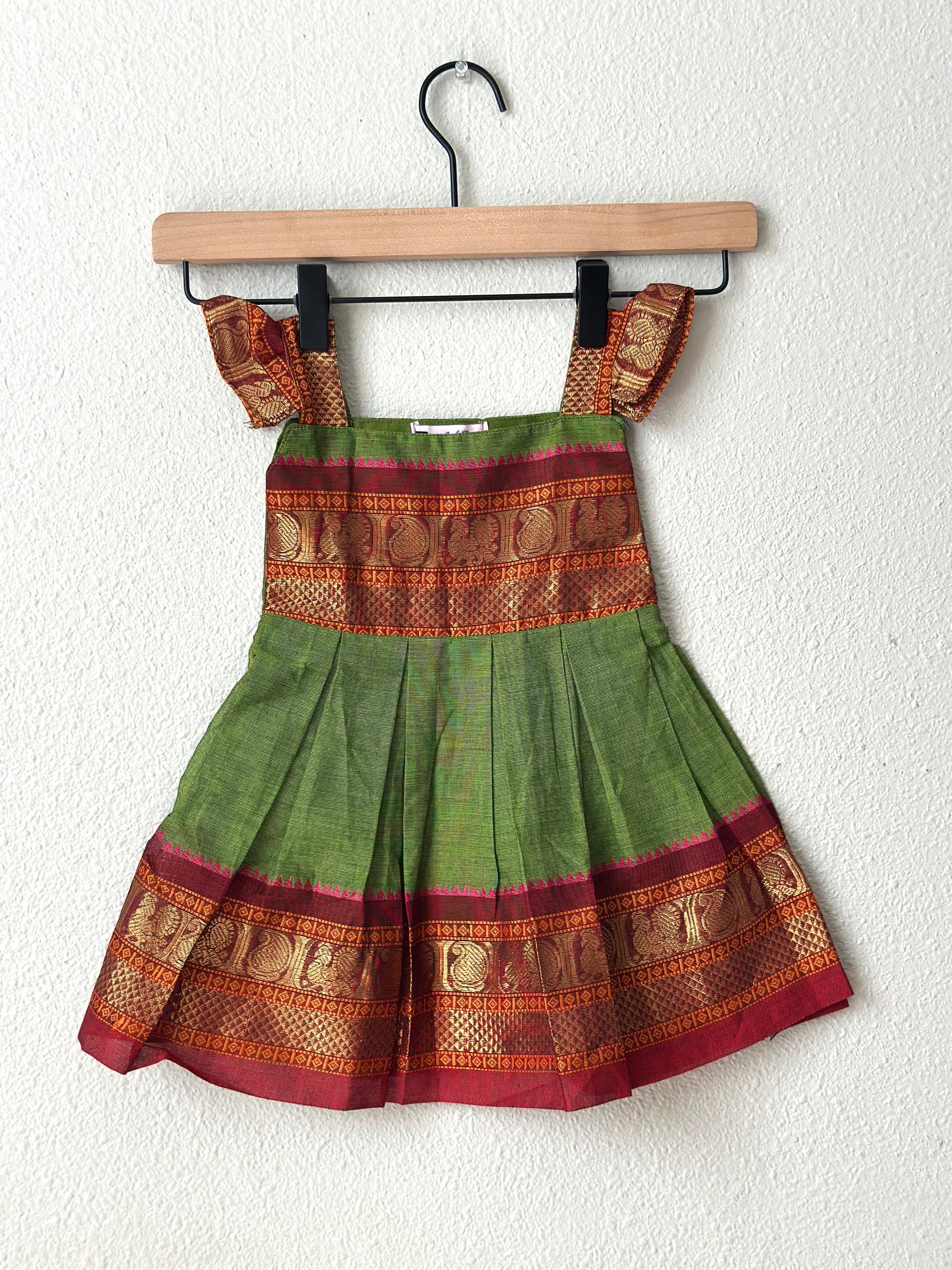 Green and maroon kanchi cotton infant frock