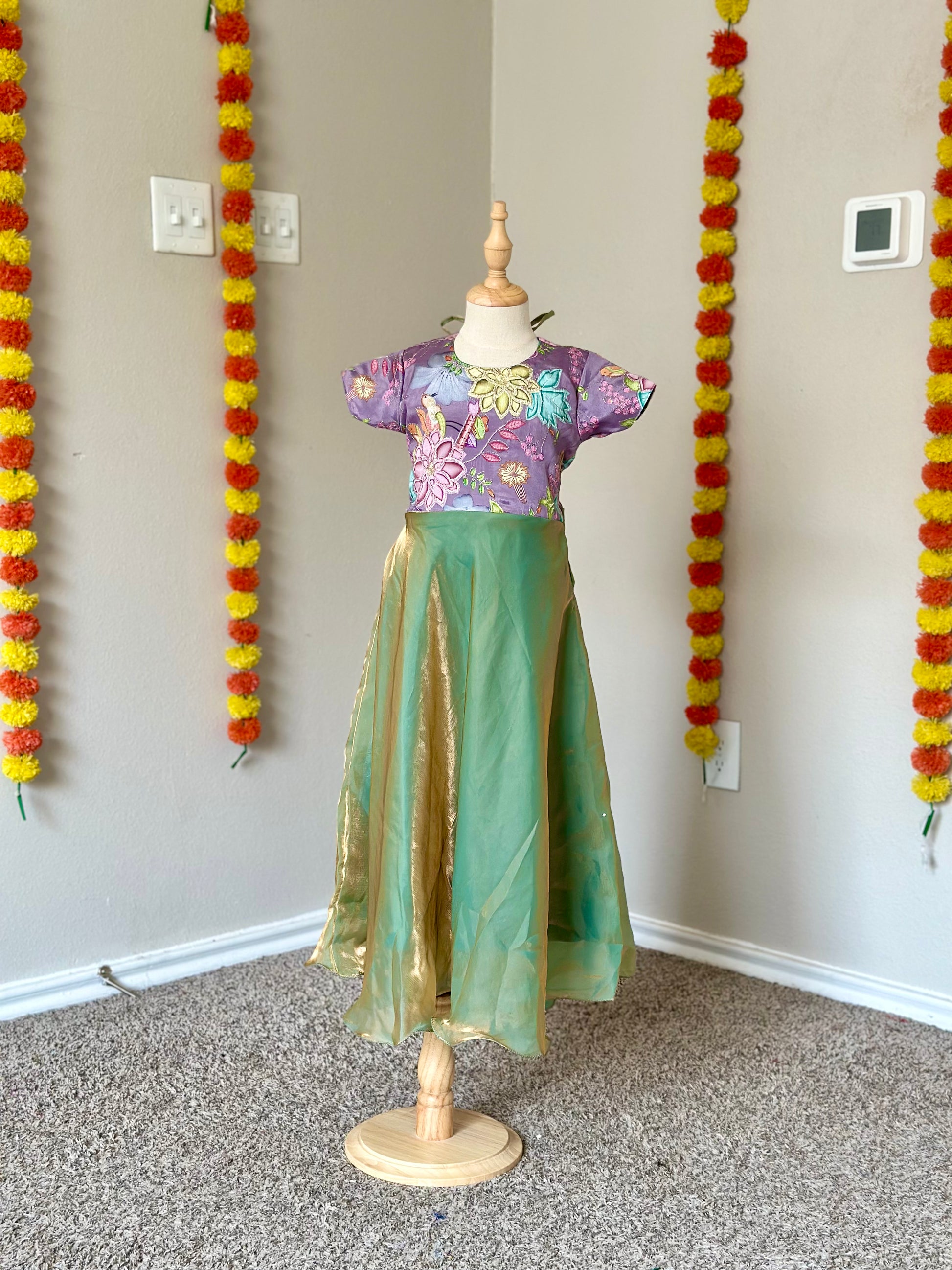 This green embroidered kids' party wear maxi features a chinnon embroidered yoke paired with a space silk skirt and crepe lining for comfort and elegance. Designed with cute cap sleeves and a stylish back neck cutout, it fastens with a delicate tying rope adorned with tassels. Ideal for parties and festive occasions, this dress combines intricate detailing with a comfortable fit to ensure your child looks charming and feels confident at any celebration.