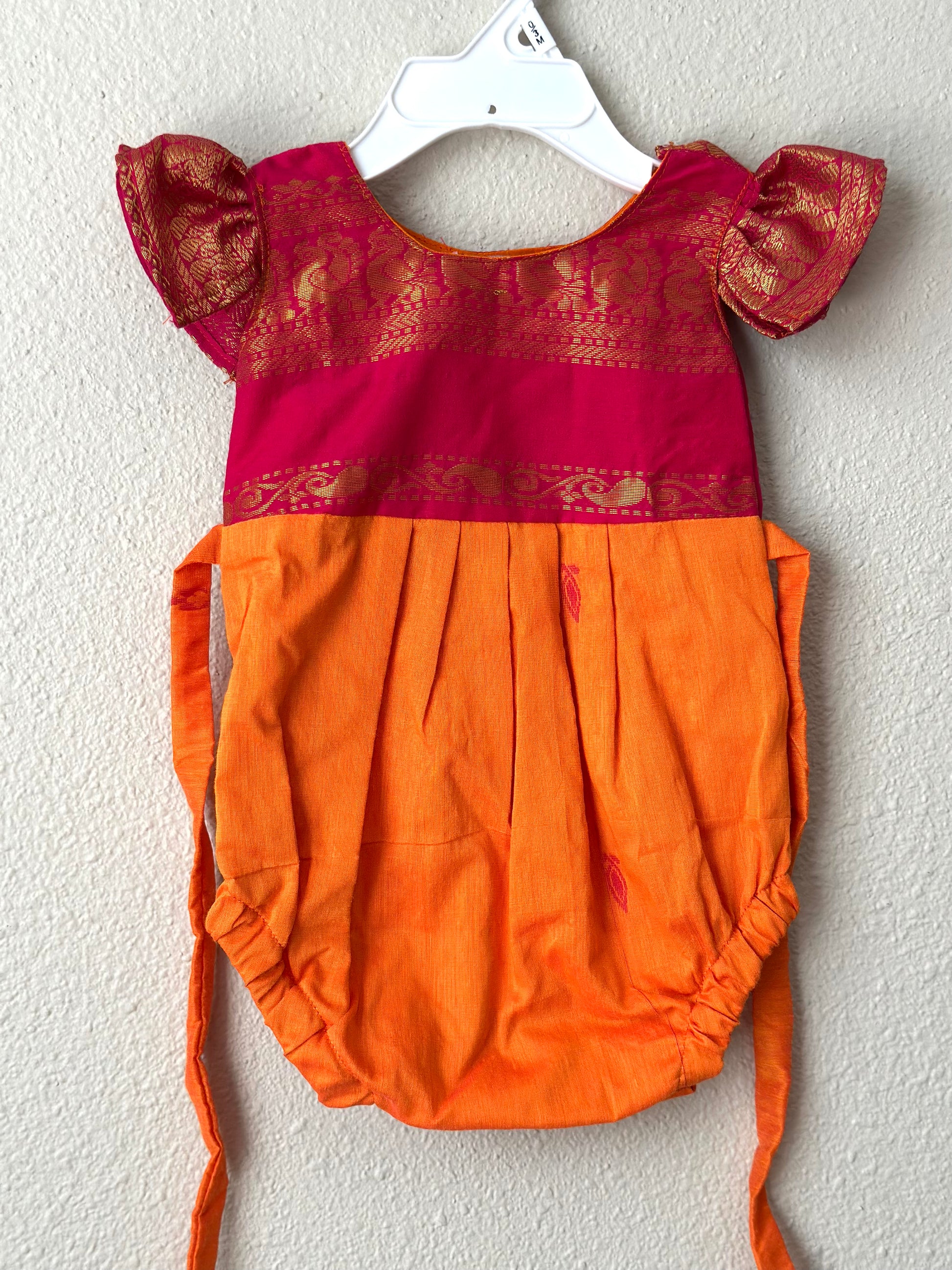 Celebrate your baby's heritage with this Infants Ethnic Onesie crafted from authentic Indian fabrics that are gentle on delicate skin. Designed for comfort and ease, it features shoulder press buttons and soft elastic fasteners near the thighs to simplify diaper changes. The included wrap skirt adds a festive look, perfect for special occasions while keeping functionality in mind. This onesie seamlessly blends traditional charm with practical design for your little one's every day and celebratory wear.