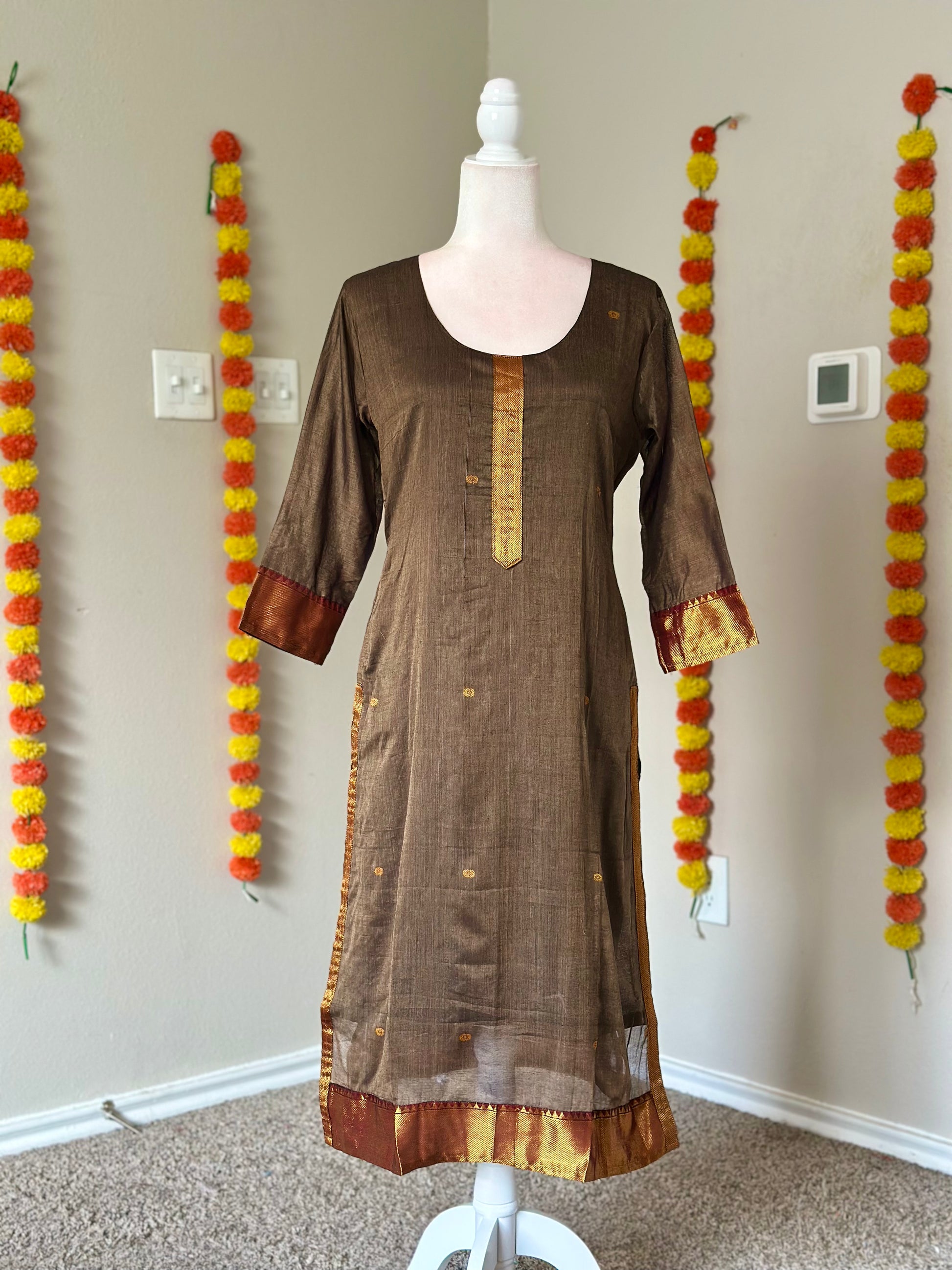 This two-piece Narayanpet salwar set features a top with elegant 3/4 sleeves and beautifully crafted border detailing, reflecting traditional craftsmanship. The combination enhances both comfort and style, making it suitable for all occasions. The intricate borders accentuate the silhouette, offering a refined and authentic look.