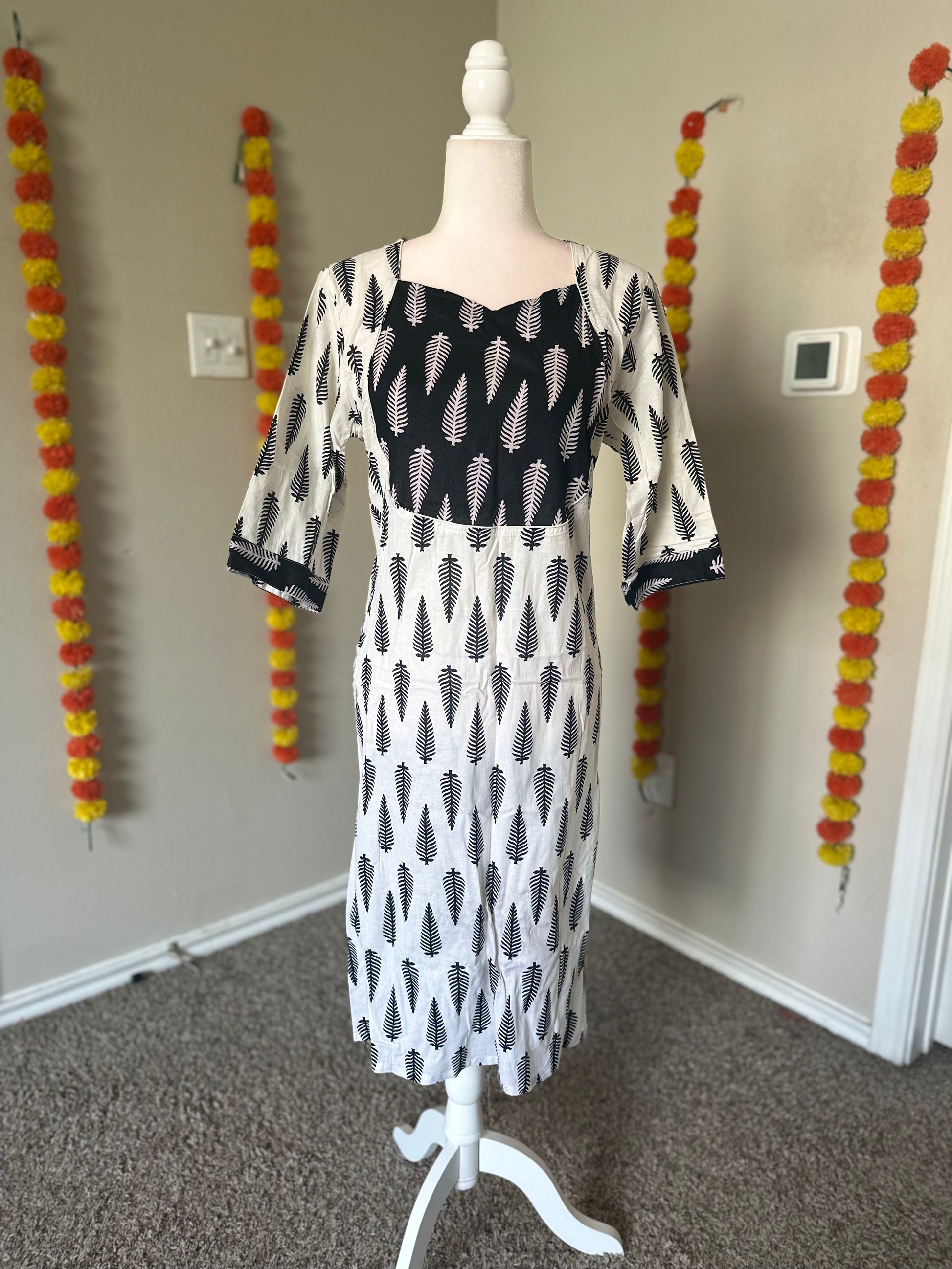 This simple white patchwork kurti adds visual interest while maintaining a sleek silhouette. Crafted from quality fabric for comfort during extended wear, it's an ideal addition to your everyday wardrobe. Perfect for casual outings or informal gatherings when paired with jeans, leggings, or palazzos.